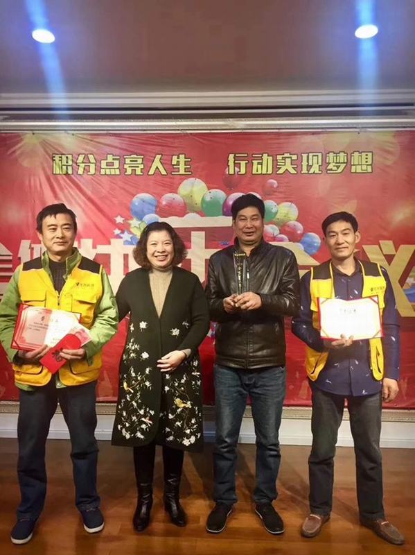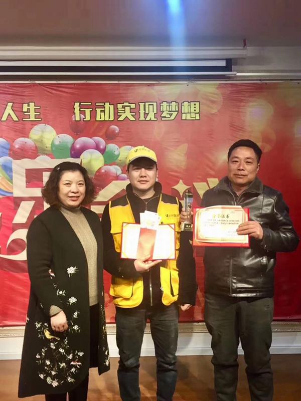 劉總為瓦工師傅頒發獎狀